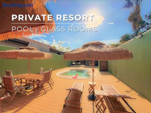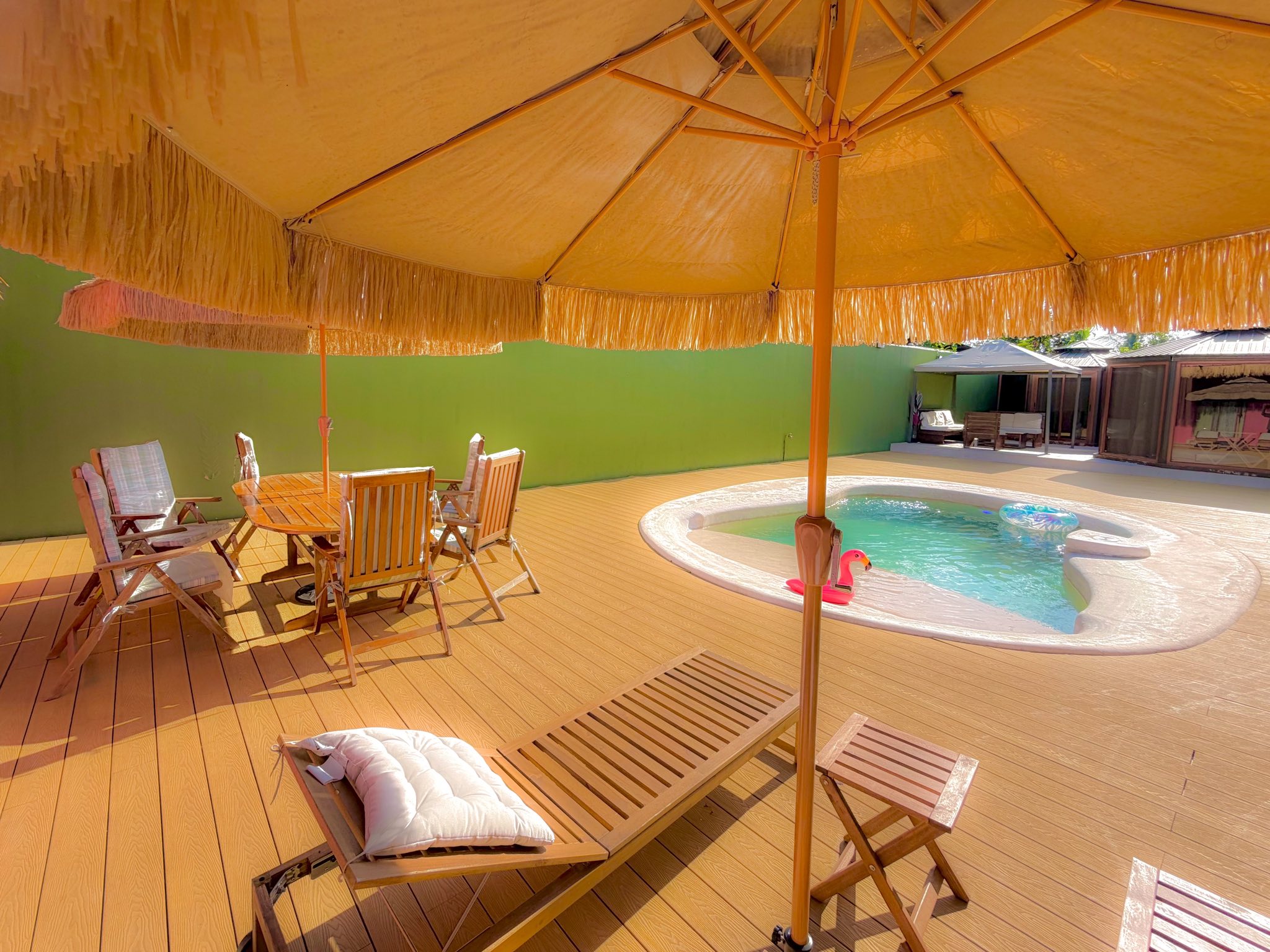 Enjoy the entire private resort — a vibrant, tropical-inspired space designed for relaxing, bonding, and celebrating. The property includes a main house, two glass rooms, a private pool, and multiple outdoor areas where your group can spread out and enjoy different spaces. Whether you’re lounging by the pool, sharing meals under the shade, or just catching up with friends and family, everything is yours to enjoy. Perfect for big groups, special occasions, or pre-wedding preparations where space, privacy, and comfort all matter.
